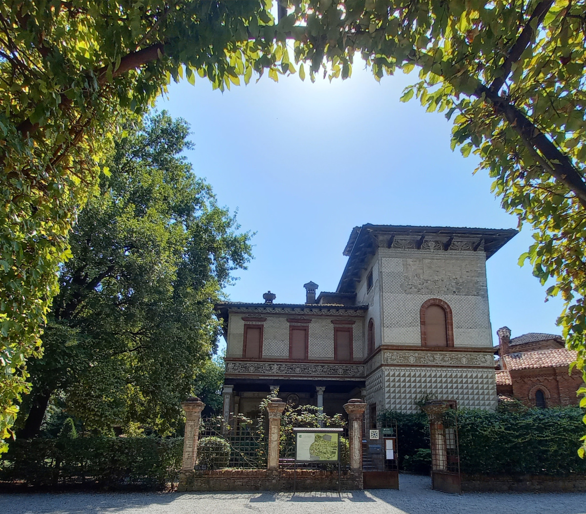 Il fregio con la “collana di perle” si trova sulla facciata dell’Ex Asilo Luigi Visconti, fatto costruire da Donna Carla Erba per ottemperare a un voto.