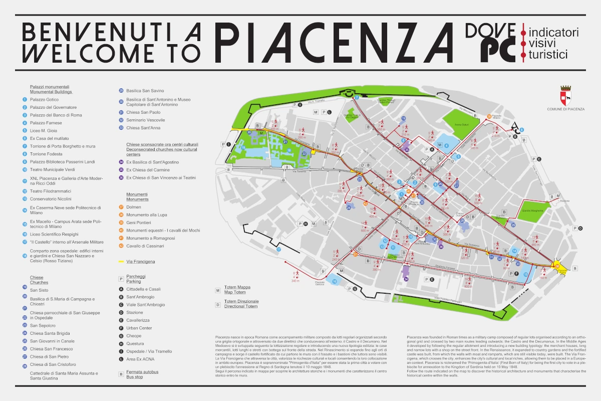 Piacenza, mappa "Dove PC" indicatori visivi turistici