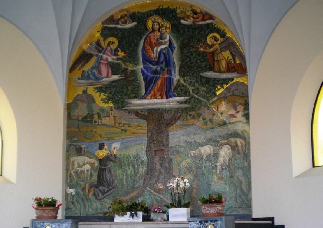 In the chapel there is a beautiful mosaic by Luciano Ricchetti, depicting the story of the young shepherdess to whom the Virgin appeared.