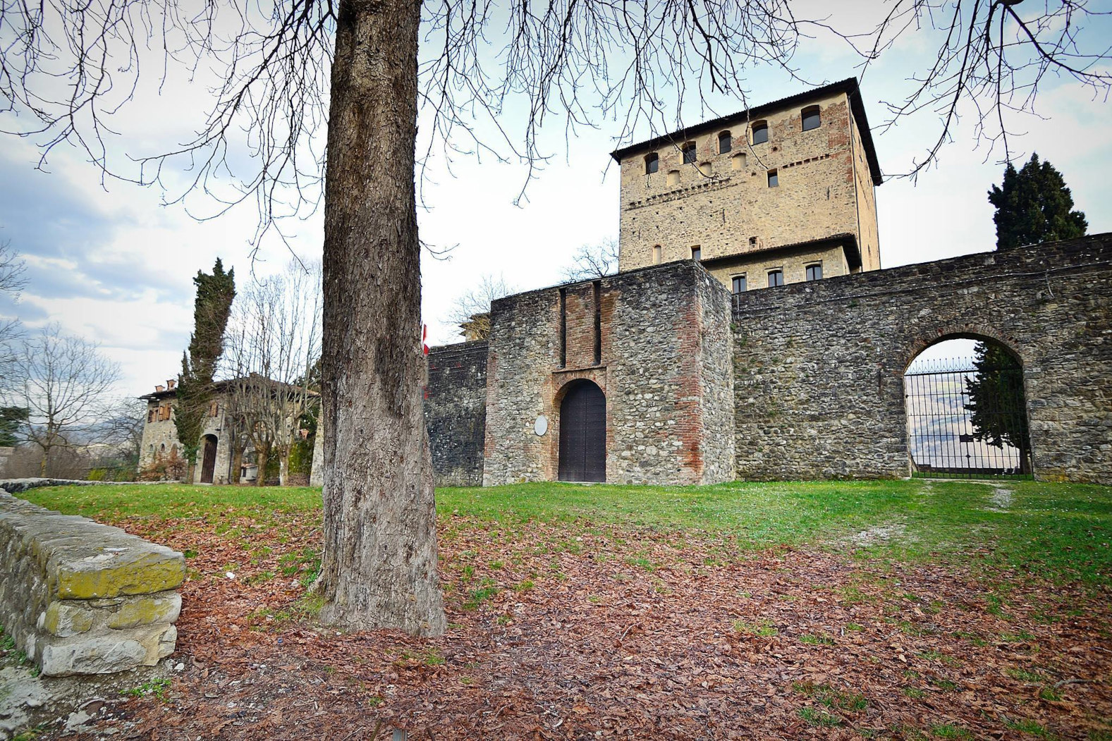 The external walls, connected to the town wall system, were destroyed throughout the centuries; nothing remains of the dry moat separating the external from the internal walls. Such walls are still visible, together with two drawbridges, on the North-Western and North-Eastern sides. The western side shows remains of the Bishop Tower; S. Petrii Basilica was on its extension, and it was long used by the castle owners as powder-magazine.