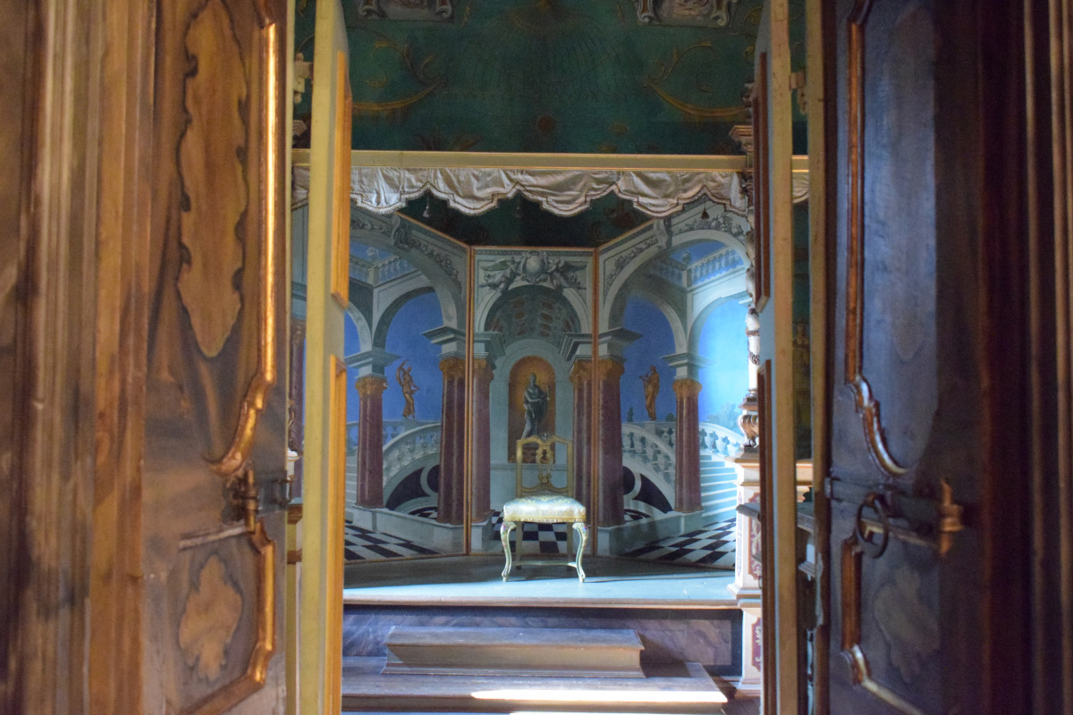 Princess Maria Ruspoli Gramont became owner of the castle in 1922 and thanks to her will the manor was restored. Having decided to rearrange and make habitable the entire castle, that was in a serious state of neglect, she decided to convert a rectangular room at the first floor into a small theatre.