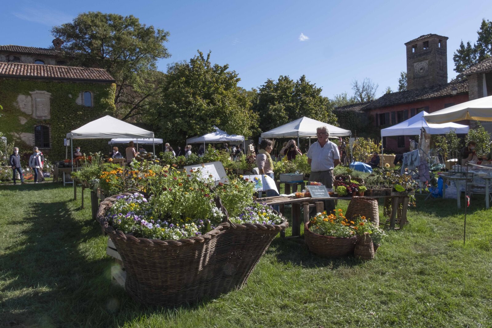 Visitors can stroll between the stands of the exhibition in the old farm courtyard of the castle, or in the surrounding park, admiring the Renaissance towers and walls of this fortress in the plain, still surrounded by a moat filled with water.