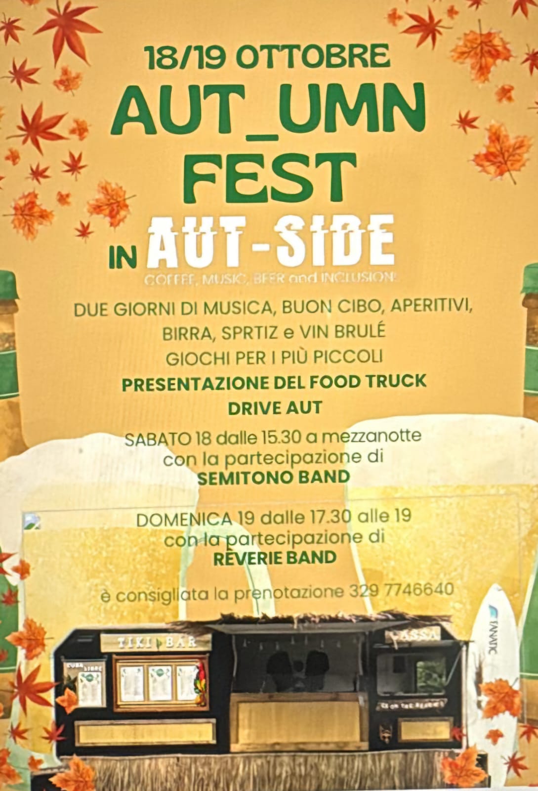 Nel fine settimana del 18 e 19 ottobre presso “AutSide Bar” (annesso al Centro Culturale di San Nicolò) si terrà la manifestazione