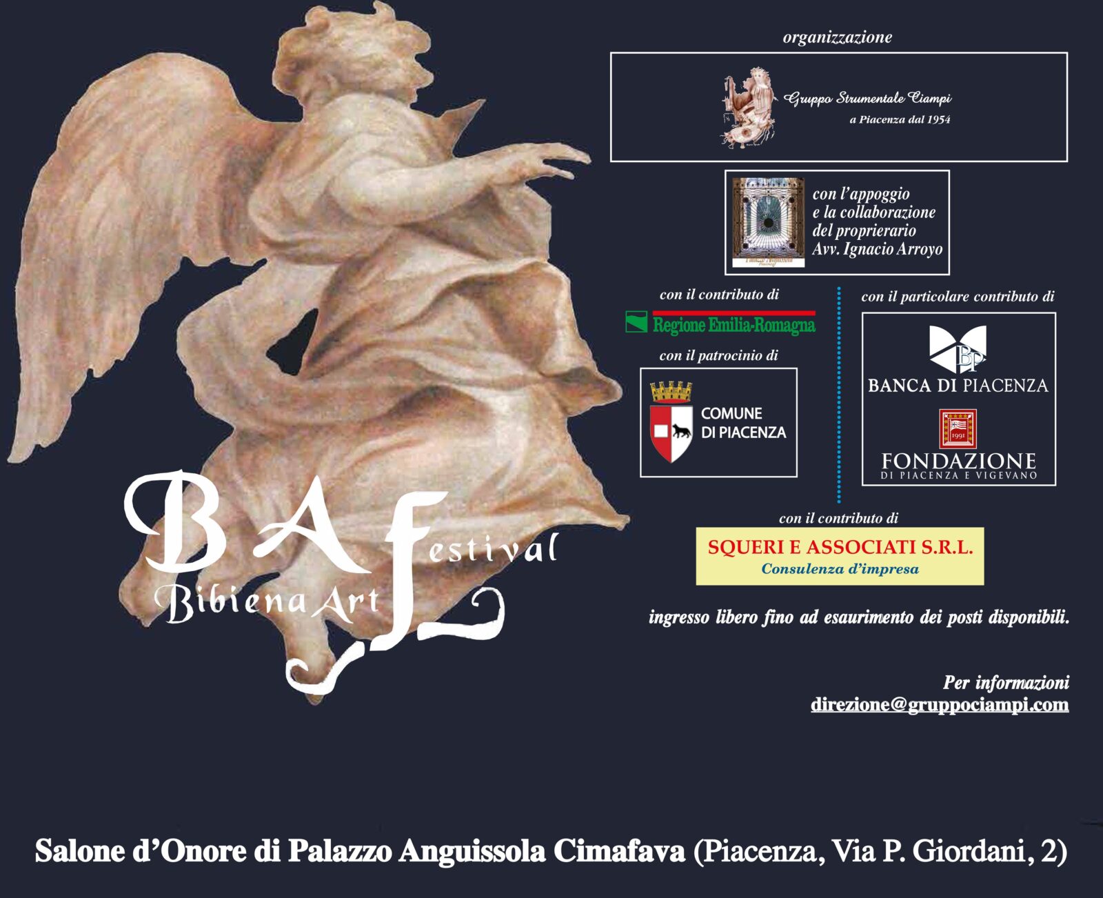 I concerti si terranno presso il Salone d’Onore di Palazzo Anguissola Cimafava.