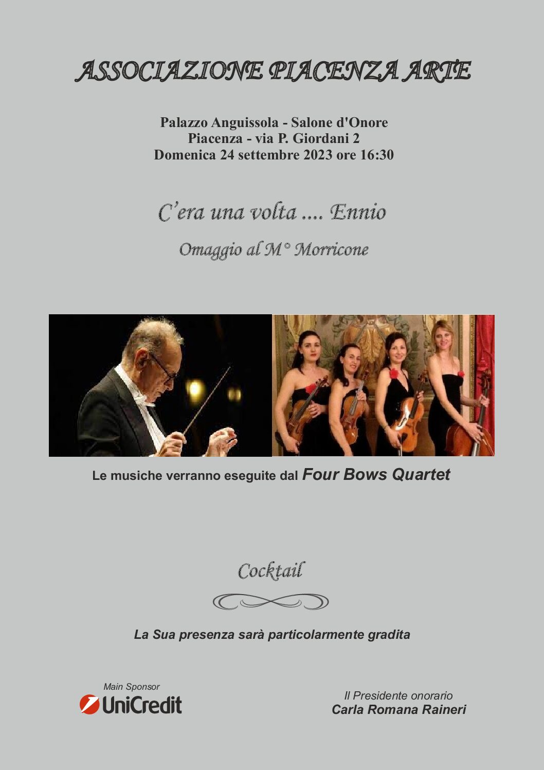L’associazione Piacenza Arte organizza un concerto omaggio alla figura di Ennio Morricone.