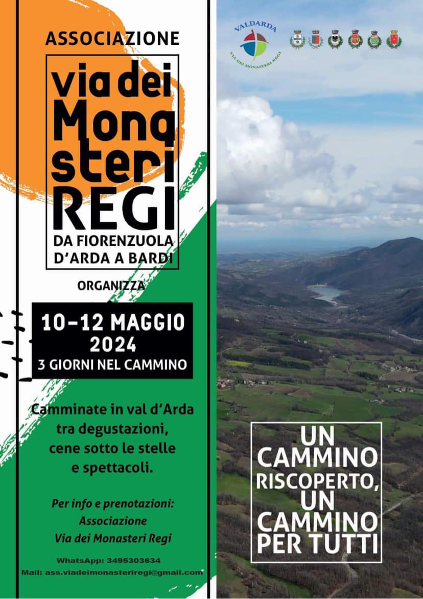 3 giorni di full immersion nei luoghi del Cammino dei Monasteri Regi da Fiorenzuola d’Arda a bardi. L’omonima associazione propone un’escursione nel secondo fine settimana di maggio.