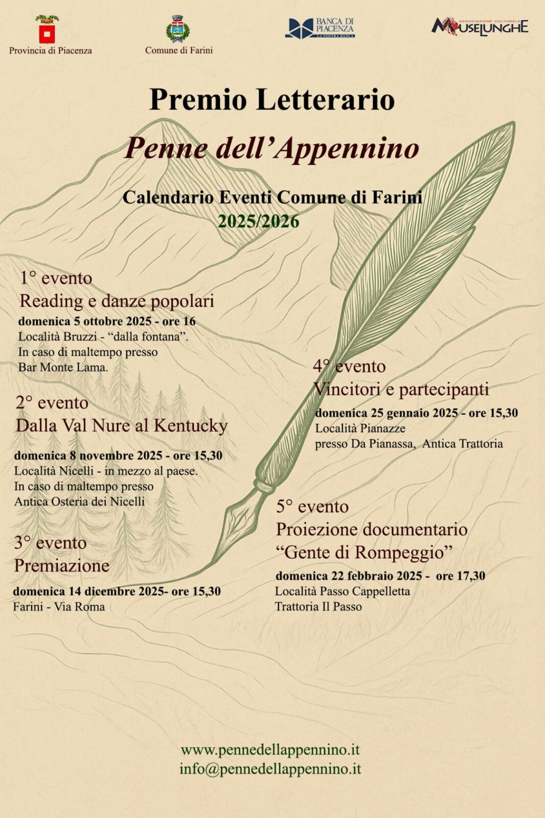 Il Comune di Farini organizza nelle sue frazioni cinque appuntamenti a partire da ottobre con la nascita del Premio Letterario